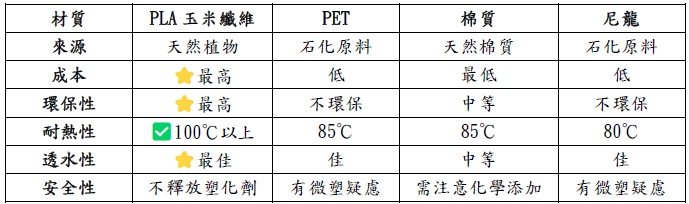 PLA玉米纖維茶包與其他材質的比較